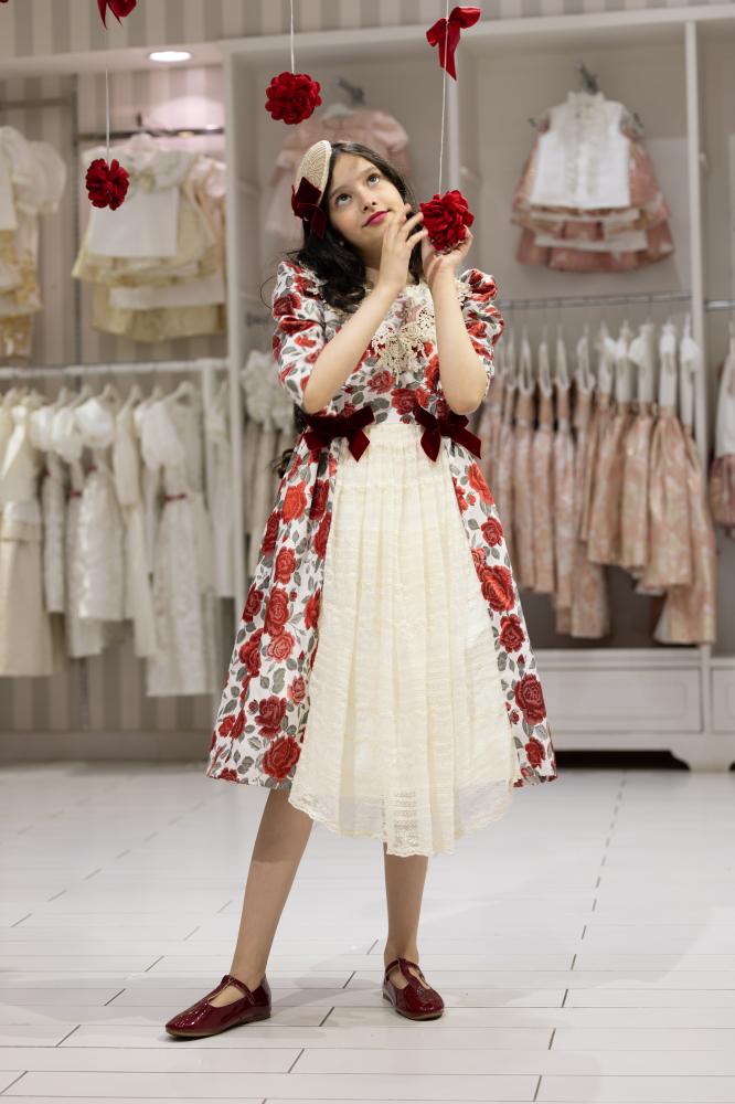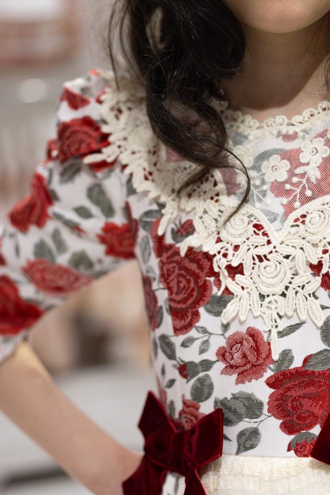 امنحي صغيرتكِ إطلالة أنيقة ومميزة مع هذا الفستان الراقي المصنوع من الجاكار الفاخر بتصميمه الفريد والنقشات الزهرية الجذابة، مع لمسة أنثوية ناعمة من الدانتيل الفاخر. يجمع بين الأناقة الكلاسيكية والتفاصيل العصرية ليكون خيارًا مثاليًا للمناسبات الراقية والاحتفالات الخاصة.