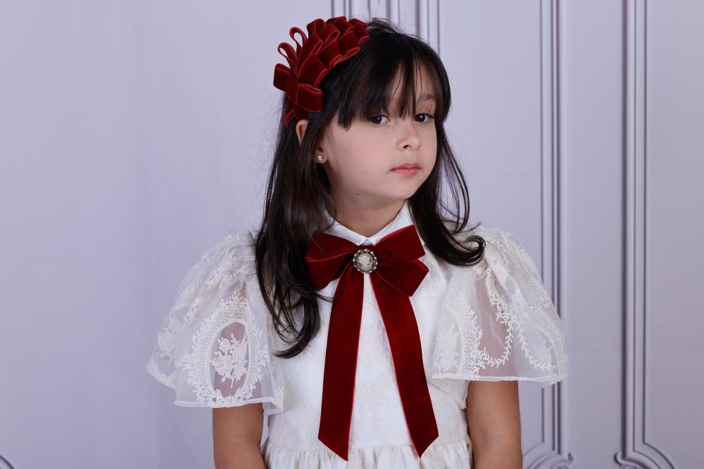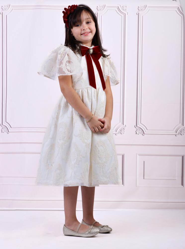 اجعلي طفلتك تبدو كأميرة بفستان "إليزابيث أوف وايت" المصنوع من قماش الأورجانزا المطرز الفاخر. تصميمه الكلاسيكي وألوانه الهادئة مع اللمسات الأنيقة يجعله الخيار المثالي للمناسبات الرسمية والاحتفالات الخاصة.