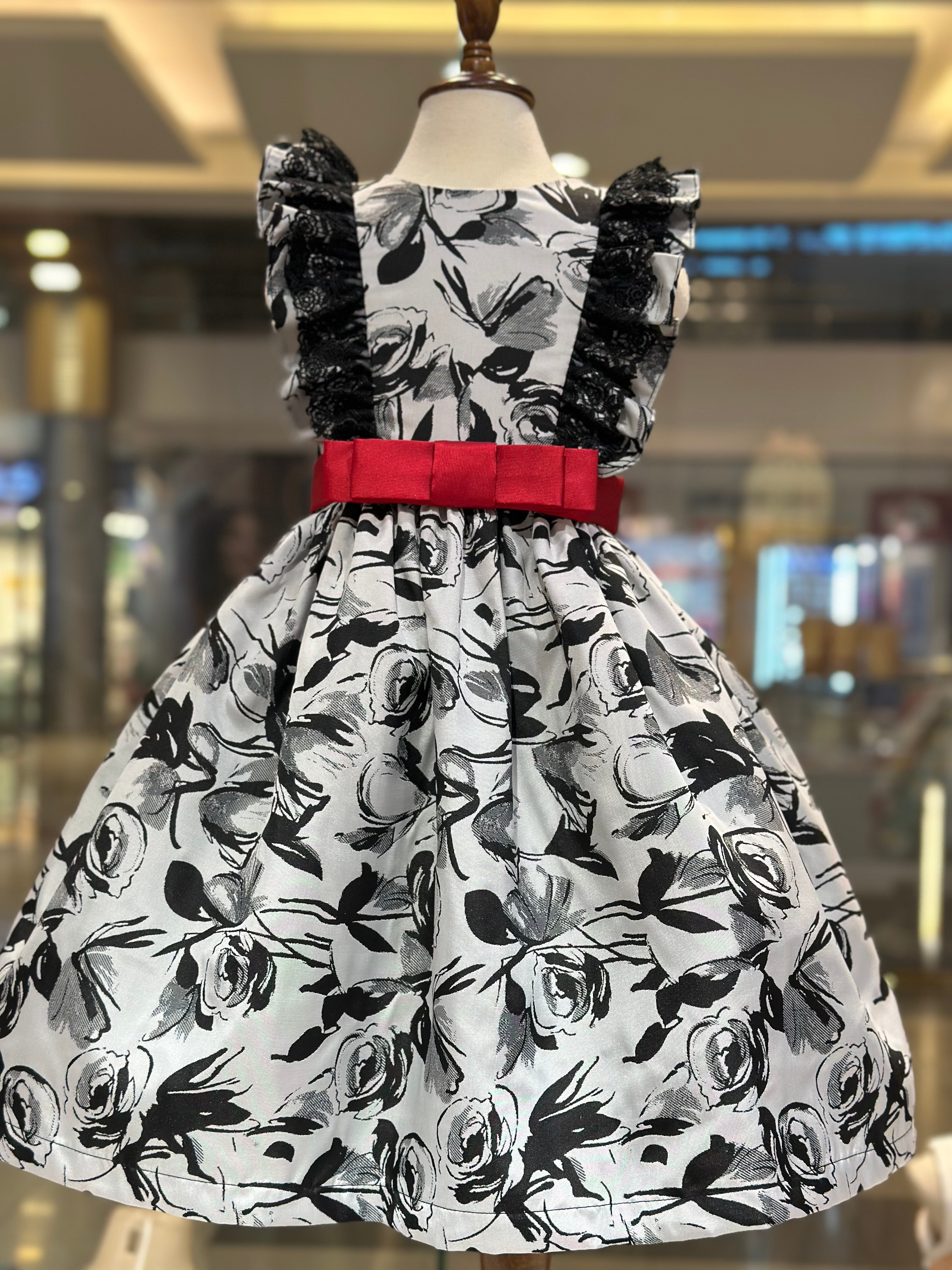فستان “بلاك فلاور” الأنيق للأطفال مصنوع من قماش الجاكار الإيطالي الفاخر، يتميز بنقشة زهور جذابة بالأبيض والأسود لإطلالة كلاسيكية متميزة. يتمتع الفستان بتصميم عصري مع أكتاف مزينة بالكشكش تضفي لمسة رقيقة وأنثوية، بالإضافة إلى حزام خصر باللون الأحمر يبرز جمال التصميم ويمنح الفستان لمسة من الفخامة. مثالي للمناسبات الخاصة مثل الحفلات والأعياد، حيث يجمع بين الأناقة والراحة ليكون الخيار الأمثل لإطلالة طفلتك الفريدة.